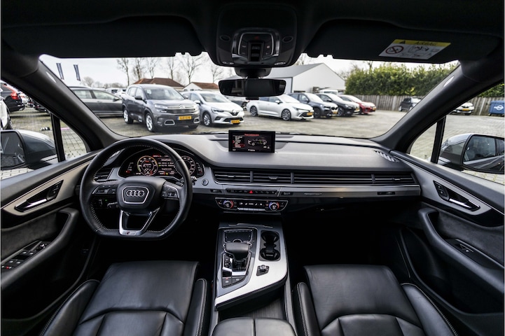 Gebouwd voor liefhebbers van autorijden, deze Audi Q7 levert sportieve prestaties en onafgebroken rijplezier. De krachtige dieselmotor van deze auto is gekoppeld aan een automatische transmissie. Lederen bekleding is een smaakvolle en comfortverhogende optie. Lekker hoor, die verwarmbare voorstoelen. Helemaal op koude dagen. Natuurlijk zijn de sportstoelen super functioneel als het rechterpedaal ingetrapt wordt. Maar ook voor het uiterlijk doen ze veel! Laat de zon maar schijnen door het elektrisch bediende glazen panoramadak. De elektrische achterklep opent met een druk op de knop, zodat u gemakkelijk toegang heeft tot de bagageruimte. In deze Audi profiteert u onder andere ook van: 20 inch lichtmetalen velgen, Full LED koplampen, sportinterieur, zwarte hemelbekleding, dakspoiler en getint glas.