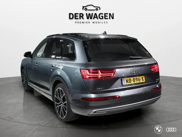 Deze fraaie Audi Q7 beschikt over een uitgebreide optielijst met daarop onder andere het elektrisch bedienbaar panoramadak, adaptive cruisecontrol, Audi Ambiente plus interieurverlichting, een elektrisch wegklapbare trekhaak, de 14 voudig instelbare S line sportstoelen, 3x S Line optiek met S line exterieur, het afgevlakte stuurwiel en de sportstoelen, 22" velgen en geheugenfunctie op de stoelen.