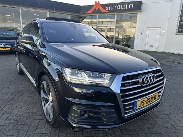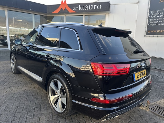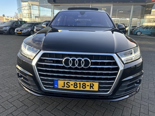Zeer Luxe Audi Q7 3.0 TDI Quattro 7-persoons S-Line met Panorama dak, Cruise control, 21 inch lichtmetalen velgen, Luchtvering instelbaar, Digitaal Dashboard, 3 zones Climate control, Binnenspiegel automatisch dimmend, Buitenspiegels elektrisch verstelbaar/verwarmd/inklapbaar, Dode hoek detectie, Bluetooth, Boordcomputer, Parkeersensoren voor en achter, Camera, Regensensor, Rijstrooksensor met correctie, Schakelen op stuur, Multi functioneel stuurwiel, Luxe bekleding met stoelverwarming, Stuurverwarming, Getint glas, Achterstoelen elektrisch, Elektrische trekhaak en Volledig S-Line uitgevoerd !!