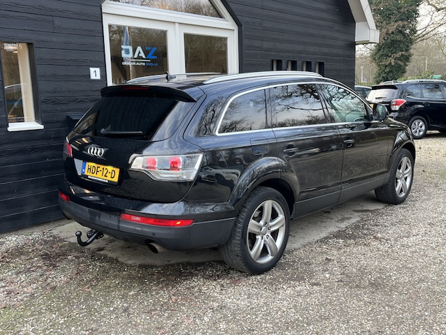 Duitse auto's zijn wereldberoemd om hun precisie, luxueuze comfort en betrouwbaarheid. Laat je verwonderen door deze krachtige, in perfecte staat verkerende Audi Q7. Hij heeft een benzinemotor en een automatische transmissie. Even een paar wel héél aantrekkelijke pluspunten van deze fraaie auto: een elektrisch bediend glazen panorama dak, een elektrisch bedienbare achterklep en een prachtig lederen interieur! Dankzij de elektrische stoelbediening is het gemakkelijk om de optimale zitpositie te vinden. De gasontladingslampen van de xenonverlichting zorgen voor een krachtige en heldere lichtbundel. Tot de uitrusting behoren ook 20 inch lichtmetalen velgen, donker getint glas achter, in delen neerklapbare achterbank en snelheidsafhankelijke stuurbekrachtiging.