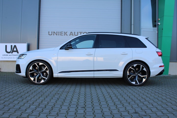 In nieuwstaat verkerende facelift model Audi Q7 55TFSI e Quattro Plug in Hybride in de fantastische kleur "Gletsjerwit" metallic met voorzien van bijna alle mogelijk opties en met maar slechts 49.998 kilometers op de teller! Betreft een volle "S-line" uitvoering die fabrieksaf lekker rijk is uitgerust met bijna alle mogelijke opties. We zullen er een paar noemen, zoals : Glazen panoramadak, S-line interieur, exterieur en onderstel, Elektrisch verstelbare S-line halfleder sportstoelen met geheugen en memory, Bang & Olufsen 3D soundsysteem, Elektrische wegklapbare trekhaak, Luchtvering, gloednieuwe 23" inch RSQ8 sportvelgen met nieuwe 285/35R23 Hankook banden, Achteruitrijcamera, Elektrische achterklep, Standkachel, Laser LED- Matrix koplampen met dynamische knipperlichten, LED achterlichten met dynamische knipperlichten Audi Active Lane Assist, Audi Side Assist, Head Up Display, Audi Virtual Cockpit Plus, Verwarmbare stoelen voor + achter, Draadloze telefoonlader, Climate Control/ Digitale Airco, Audi active front assist, Audi Exclusive black optik pakket met voor en achter hoogglans zwart Audi logo's, Audi Drive Select, Apple Carplay, Keyless GO & Entry, Dubbele beglazing, S-line afgevlakt sport stuurwiel, Navigatie Plus MMI Touch, ACC (Adaptive Cruise Control), DAB+ Radio, Sfeerverlichting, S- tronic automaat, en nog véél meer! Kortom bij deze dikke Audi Q7 zijn bijna alle mogelijk opties aangevinkt! Nieuwprijs ruim €110.432,-
