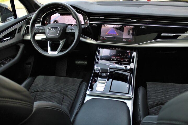 Audi Q7 55 TFSI e Quattro uitgevoerd in S-line sportpakket en de prachtige kleur 'Daytonagrijs metallic'. De auto is compleet Audi dealer onderhouden en heeft slechts 1 eigenaar gehad. Deze hybride Q7 heeft een gecombineerd vermogen van 381 pk, een trekgewicht van maar liefst 3500 kg en een elektrisch bereik van +/- 43 km. Het is een BTW-auto, waardoor de BTW aftrekbaar is voor de zakelijke rijder (prijs is inclusief BTW). Verder betreft het een uiterst compleet uitgevoerde Q7 met o.a. de volgende lijst aan opties: