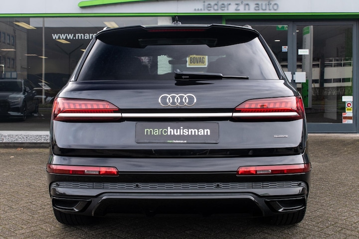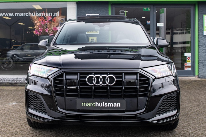 Prachtige Audi Q7 55 TFSI quattro geheel S-Line uitgevoerd en voorzien van 7 zitplaatsen. In Orcazwart metallic i.c.m. RS-stoelen met Valcona zwart lederen bekleding en ruitpatroon. Origineel Nederlands geleverd en volledig Audi dealer onderhouden. Uitgerust met veel (gewilde) opties zoals elektrisch bedienbaar glazen panoramadak, uitgebreid leder pakket (dashboard en deurpanelen), 22 inch SQ7 licht metalen velgen in glanzend zwart, stoelverwarming, Optiek pakket zwart, Audi Advanced Key (keyless entry), BOSE Soundsystem, servosluiting portieren, 4-wiel sturing, adaptieve cruise control, etc. Voorzien van veel fabrieksopties zoals: