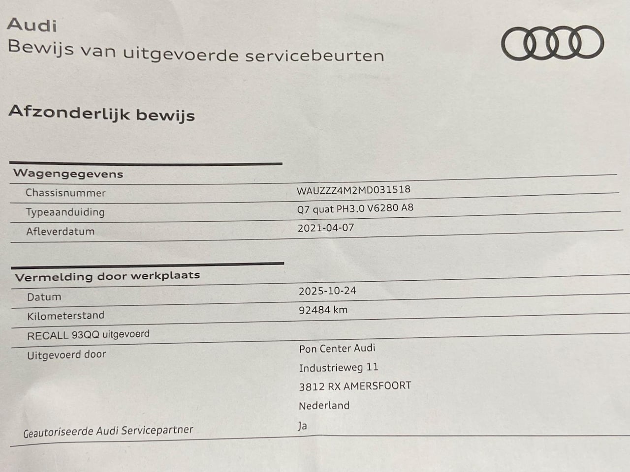 Bij aflevering