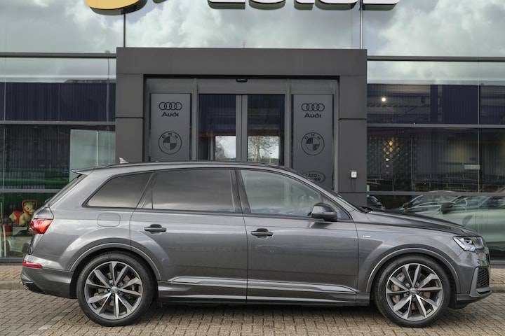 Zeer leuke Audi Q7 binnen. Wederom een hybride variant. Betreft een dikke auto om te zien dankzij de daytona grijze kleur en zeker in combinatie met het S-line pakket.