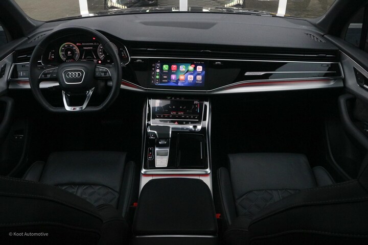 Op het gebied van infotainment is deze Q7 volledig voorzien. Het Bang & Olufsen 3D Sound System biedt een indrukwekkend ruimtelijke geluidsbeleving. De auto beschikt verder over MMI Navigation Plus, Virtual Cockpit, Apple CarPlay en Android Auto, evenals de Audi Phone Box met draadloos laden. Het geluidsisolerende glas zorgt voor een bijzonder stille cabine, zelfs bij hogere snelheden. Alles draagt bij aan een comfortabele en hoogwaardige rijervaring.