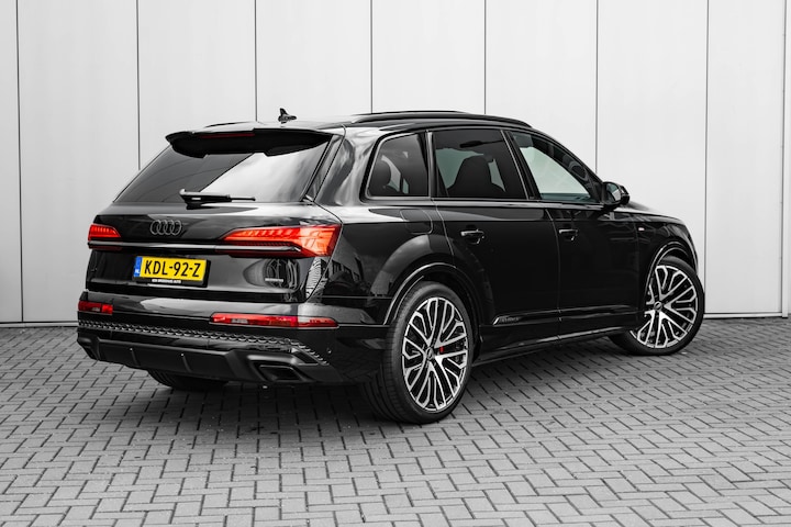 Het is niet alleen de bouwkwaliteit waar Duitse auto's om bekend staan, maar ook de rijkwaliteiten. Dat merkt u achter het stuur van deze Audi Q7. De S-Line styling geeft een niet te missen uitstraling. De hybride combi van een verbrandingsmotor en een elektromotor zorgt voor zeer laag brandstofverbruik en veel minder uitstoot. Het kan niet op: een fraai lederen interieur, zeeën van licht met het elektrisch bediende glazen panorama dak en probleemloos in- en uitladen met de elektrisch bedienbare achterklep. U zult absoluut de luxe waarderen van de stoelverwarming, verwarmbare achterbank, en het verwarmbare stuur dat inbegrepen is in dit voertuig. Comfortabel zitten, ook als de rit onstuimig is? Dat kan met de sportstoelen. Hobbeltjes en oneffenheden in de weg zoeven onvoelbaar onder u door dankzij de luchtvering. Verblinding van tegenliggers is er niet meer bij, dankzij de koplampen met matrix LED-verlichting. En toch de kwaliteit van daglicht in het donker! Bij de uitrusting van deze Audi horen onder meer 20 inch lichtmetalen velgen, sportonderstel, warmtewerend glas, trailer assistent, dakspoiler en LED-achterlichten. Omdat goed geïnformeerd rijden tegenwoordig om veel meer draait dan alleen snelheid en brandstofpeil, laat het digitale dashboard alle functies zien die u nodig heeft. Met de 360 graden camera kunt u elk detail rond de auto zien, waardoor mogelijke schade door verkeerd inschatten van afstanden vermeden wordt. Adaptive cruise control is veilig en comfortabel. De snelheidsregelaar houdt automatisch afstand tot het voertuig dat voor u rijdt. Kilometerstand? Oliepeil? Accuspanning? Allemaal te zien via de app. Overal. Altijd. Dankzij Connected Services. Een massieve sound of fluisterzachte verstaanbaarheid? Het high performance audiosysteem presteert op topniveau. Deze auto is voorzien van full map navigatiesysteem, electronic climate control, draadloos opladen, DAB ontvangst, regensensor en keyless entry. Als bestuurder van deze Audi bent u nooit alleen. U wordt onderweg bijgestaan door technologische hulpmiddelen die samen met u de weg in de gaten houden. Als het nodig is, grijpen ze zelfs in, door te remmen of bij te sturen. Bij de veiligheidssystemen van deze auto hoort ook de verkeersbord-detectie. Die leest tijdens het rijden als het ware met u mee en attendeert u op de significante verkeersborden langs en boven de weg. Met het Lane-keeping systeem gaat u nooit onbedoeld over de streep. Verder is deze auto uitgerust met hill hold functie, frontale botsbescherming en bandenspanningcontrolesysteem. Interesse voor deze Audi Q7? Kom 'm dan van dichtbij bekijken. We maken graag een afspraak.