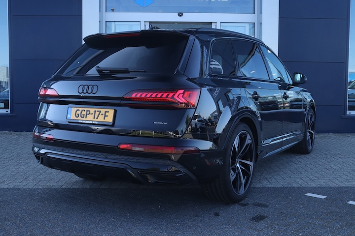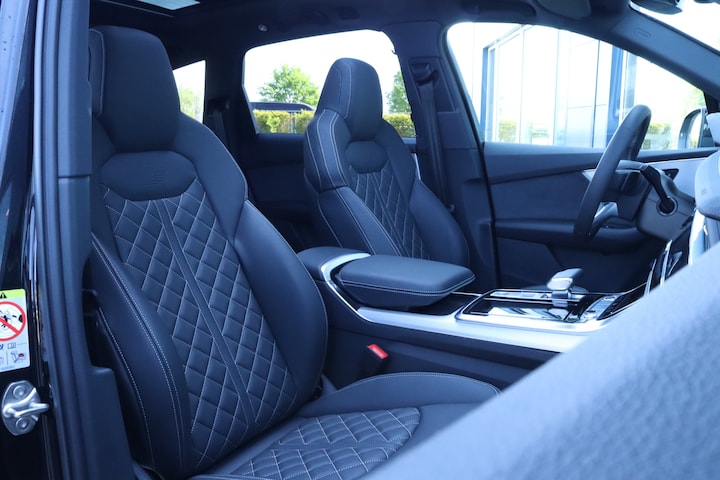 Deze Q7 is uitgevoerd als Pro Line S Competition, dus compleet met zwart optiekpakket, 22 inch Audi velgen, en Valcona lederen bekleding. Een echte blikvanger, maar ook een stille krachtpatser dankzij de slimme PHEV-aandrijflijn.
