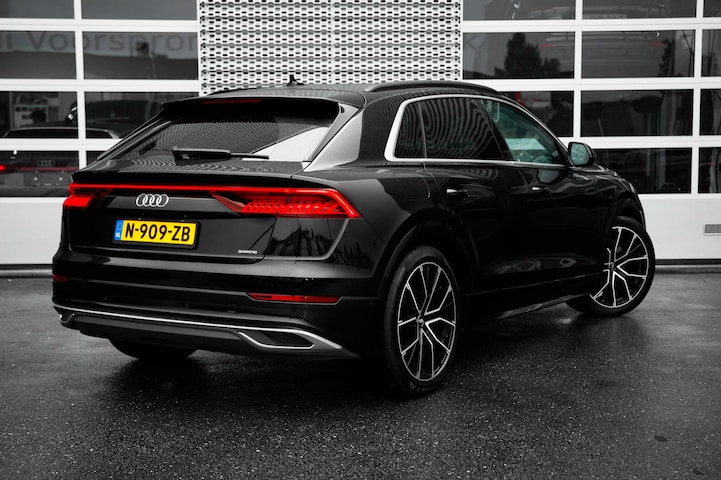Ontdek de vele kwaliteiten van de Audi Q8. Met zijn tijdloze design, zijn krachtige motor en zijn vele veiligheidssystemen laat deze auto u versteld staan. Elektrisch? Benzine? Bij deze Audi Q8 kan het allebei. De hybride motor biedt de ideale keuzecombinatie. Binnenin zien we een fraai afgewerkt lederen interieur. In de verwarmbare voorstoelen zitten is elke keer een welkom gevoel. Een ommetje of een lange trip? De comfortstoelen zorgen elke keer voor een goede zithouding! Een praktische extra is de elektrisch bedienbare achterklep die opent en sluit met een druk op de knop. In deze auto profiteert u onder andere ook van: 21 inch lichtmetalen velgen, LED koplampen, adaptief dempingsysteem, warmtewerend glas, LED-achterlichten en verstelbare lendensteunen. Omdat goed geïnformeerd rijden tegenwoordig om veel meer draait dan alleen snelheid en brandstofpeil, laat het digitale dashboard alle functies zien die u nodig heeft. Geen nekkramp of spiegelwerk meer bij het achteruitrijden: de achteruitrijcamera kijkt en ziet alles! Als u de adaptive cruise control inschakelt, regelt de auto zelf de snelheid en de afstand tot de auto voor u. Filerijden zal nooit een pretje worden. Maar met de file assistent wordt het wél relaxter. Deze geavanceerde optie zorgt dat u automatisch de juiste afstand tot de voorligger houdt en remt bovendien als de rij tot stilstand komt. Uw smartphone is tegenwoordig de sleutel tot heel veel. Ook voor deze auto. Remote services, noemen we dat. Waar u ook bent, contact houden is een eitje. Met premium audiosysteem, full map navigatiesysteem, kruisend verkeer detectie, electronic climate control, sportstuur met schakelpaddels en DAB ontvangst is deze Audi helemaal compleet. Deze auto is voorzien van innovatieve systemen die u onderweg begeleiden en beschermen. In het instrumentarium kunt u bovendien de verkeersborden zien die u onderweg tegenkomt. Zo helpt deze Audi u om veiliger te rijden. Het Lane-keeping systeem let constant op en waarschuwt of corrigeert als u onoplettend over de lijnen van de rijstrook gaat. Het forward collision warning-systeem is constant alert en detecteert via sensor de afstand tot voorliggers. Wordt die te klein, dan volgt een automatische waarschuwing. Dankzij veiligheidsvoorzieningen als dodehoekdetectie, hill hold functie, frontale botsbescherming en bandenspanningcontrolesysteem, bent u steeds veilig onderweg. Wilt u meer weten over deze auto? Neem dan contact met ons op voor een proefrit.