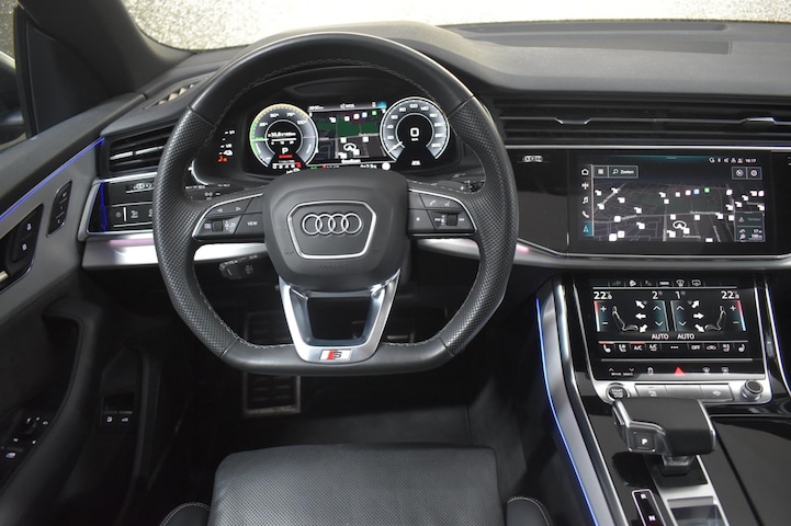Audi Q8 55 TFSI e Quattro S-Line COMPETITION 381pk | AKRAPOVIC | CARBON | MASSAGESTOELEN | STOELVENTILATIE | PANODAK | LUCHTVERING | HEAD-UP | 360'CAMERA | MATRIX | SOFT-CLOSE | KEYLESS | SFEERVERLICHTING | 23''