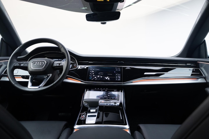 De nieuwste veiligheidssystemen komen in deze Audi Q8 samen. Het Lane-keeping systeem registreert permanent of je binnen de lijnen van de rijstrook blijft; dwaal je onbedoeld af, dan waarschuwt het systeem en corrigeert de koers. De sensor van het forward collision warning-systeem registreert permanent de afstand tot voorliggers en grijpt in als een botsing dreigt. Ook helpen het hill hold functie, frontale botsbescherming en bandenspanningcontrolesysteem, jouw rit tot een veilige rit te maken.