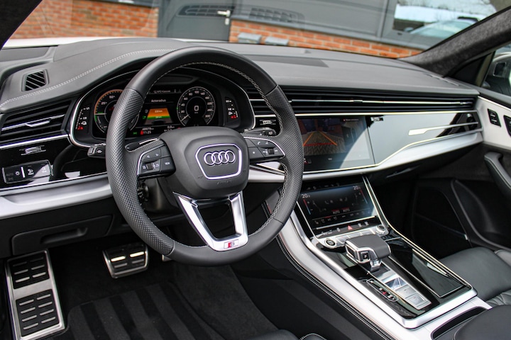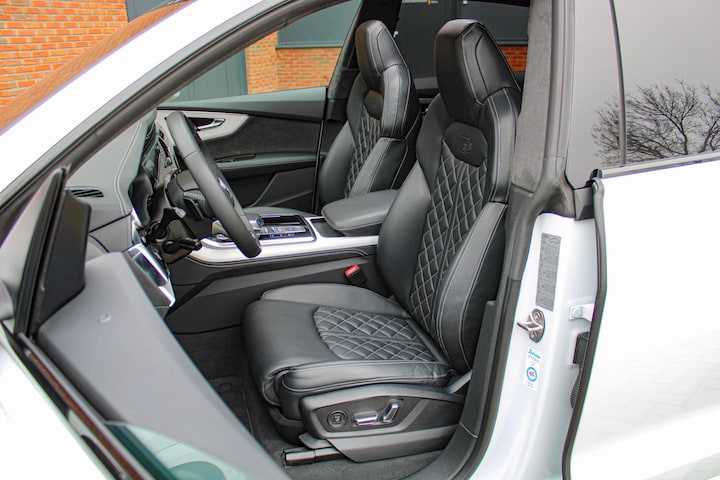 Deze Q8 is bijzonder compleet uitgevoerd en beschikt over tal van opties. Zo is het interieur voorzien van de exclusieve RS-Sportstoelen in Valcona leder met ruitstiksel, inclusief elektrische verstelling met geheugenfunctie, stoelverwarming, stoelventilatie én massagefunctie voorin.