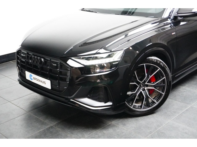 Van uw nieuwe auto verlangt u rijplezier, maar ook optimaal comfort en veiligheid. Daarom is de Audi Q8 de auto die u zoekt. Exclusiviteit en sportiviteit komen samen in de S-Line styling. Op de teller van deze auto staat slechts 1682 kilometer. Mooier kan het eigenlijk niet: de combi van elektromotor en verbrandingsmotor. Met deze hybride Audi Q8 kunt u alle kanten op. Ook een fijne dosis klasse is bijgeleverd, met het lederen interieur. Bestuurder en bijrijder krijgen een warm welkom: deze Audi Q8 is voorzien van verwarmbare voorstoelen. De sportstoelen houden u en uw bijrijder goed op z'n plek tijdens het accelereren en bij het nemen van scherpe bochten. Een praktische extra is de elektrisch bedienbare achterklep die opent en sluit met een druk op de knop. Laat de koude dagen maar komen. Bij u zitten ze zelfs achterin goed, dankzij de verwarmde achterbank. De kwaliteit van de matrix LED-verlichting geeft het gevoel dat u bij daglicht rijdt. Bij de uitrusting van deze Audi horen onder meer schuif- en kanteldak, 21 inch lichtmetalen velgen, adaptief dempingsysteem, warmtewerend glas, LED-achterlichten en verstelbare lendensteunen. Snelheid, brandstofinfo, noem maar op. Het digitale dashboard houdt u permanent op de hoogte. Goed en overzichtelijk. Overzichtelijk en veilig parkeren met de achteruitrijcamera. Overal en altijd. Adaptive cruise control is veilig en comfortabel. De snelheidsregelaar houdt automatisch afstand tot het voertuig dat voor u rijdt. Zo'n lekkere jonge auto heeft natuurlijk leuke extra's, zoals remote services. Met een speciale app maakt u overal verbinding met de auto. Zo kunt u functies activeren en controleren. Sublaag en tophoog... en alles daartussenin! Het high performance audiosysteem kan elke frequentie moeiteloos aan. Ook is de Audi uitgerust met: full map navigatiesysteem, kruisend verkeer detectie, electronic climate control, sportstuur met schakelpaddels, draadloos opladen en DAB ontvangst. De intelligente veiligheidssystemen in deze auto waken continu over uw veiligheid. De camera van de verkeersborddetectie herkent verschillende soorten verkeersborden en toont deze op het dashboard. Een camera houdt de juiste koers binnen de rijstrook in de gaten en het Lane-keeping systeem corrigeert bij afwijkingen. Op een kop-staartbotsing zit niemand te wachten. Daarom is de forward collision warning onderweg constant alert en berekent via een sensor de veilige afstand tot voorliggers. Verder is deze auto uitgerust met dodehoekdetectie, hill hold functie, frontale botsbescherming en bandenspanningcontrolesysteem. Nieuwsgierig geworden? Kom deze auto dan snel bij ons bekijken.