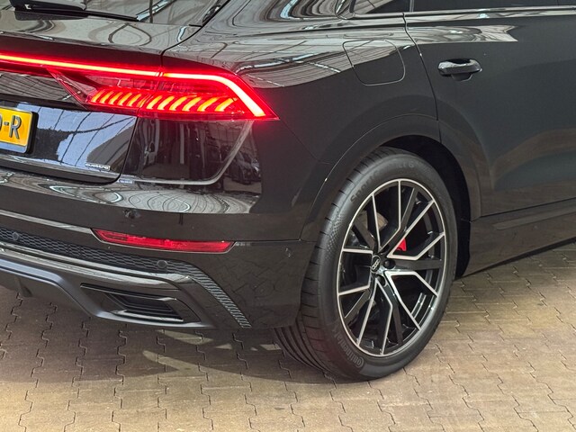 Van uw nieuwe auto verlangt u rijplezier, maar ook optimaal comfort en veiligheid. Daarom is de Audi Q8 de auto die u zoekt. Exclusiviteit en sportiviteit komen samen in de S-Line styling. Op de teller van deze auto staat slechts 1682 kilometer. Mooier kan het eigenlijk niet: de combi van elektromotor en verbrandingsmotor. Met deze hybride Audi Q8 kunt u alle kanten op. Ook een fijne dosis klasse is bijgeleverd, met het lederen interieur. Bestuurder en bijrijder krijgen een warm welkom: deze Audi Q8 is voorzien van verwarmbare voorstoelen. De sportstoelen houden u en uw bijrijder goed op z'n plek tijdens het accelereren en bij het nemen van scherpe bochten. Een praktische extra is de elektrisch bedienbare achterklep die opent en sluit met een druk op de knop. Laat de koude dagen maar komen. Bij u zitten ze zelfs achterin goed, dankzij de verwarmde achterbank. De kwaliteit van de matrix LED-verlichting geeft het gevoel dat u bij daglicht rijdt. Bij de uitrusting van deze Audi horen onder meer schuif- en kanteldak, 21 inch lichtmetalen velgen, adaptief dempingsysteem, warmtewerend glas, LED-achterlichten en verstelbare lendensteunen. Snelheid, brandstofinfo, noem maar op. Het digitale dashboard houdt u permanent op de hoogte. Goed en overzichtelijk. Overzichtelijk en veilig parkeren met de achteruitrijcamera. Overal en altijd. Adaptive cruise control is veilig en comfortabel. De snelheidsregelaar houdt automatisch afstand tot het voertuig dat voor u rijdt. Zo'n lekkere jonge auto heeft natuurlijk leuke extra's, zoals remote services. Met een speciale app maakt u overal verbinding met de auto. Zo kunt u functies activeren en controleren. Sublaag en tophoog... en alles daartussenin! Het high performance audiosysteem kan elke frequentie moeiteloos aan. Ook is de Audi uitgerust met: full map navigatiesysteem, kruisend verkeer detectie, electronic climate control, sportstuur met schakelpaddels, draadloos opladen en DAB ontvangst. De intelligente veiligheidssystemen in deze auto waken continu over uw veiligheid. De camera van de verkeersborddetectie herkent verschillende soorten verkeersborden en toont deze op het dashboard. Een camera houdt de juiste koers binnen de rijstrook in de gaten en het Lane-keeping systeem corrigeert bij afwijkingen. Op een kop-staartbotsing zit niemand te wachten. Daarom is de forward collision warning onderweg constant alert en berekent via een sensor de veilige afstand tot voorliggers. Verder is deze auto uitgerust met dodehoekdetectie, hill hold functie, frontale botsbescherming en bandenspanningcontrolesysteem. Nieuwsgierig geworden? Kom deze auto dan snel bij ons bekijken.