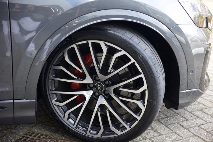 Binnenin ervaart u ultiem rijcomfort dankzij de adaptieve S sportstoelen die voorzien zijn van verwarming, ventilatie en massage. Bovendien is deze Q8 rijk uitgerust met vele opties, waaronder diverse rijhulpsystemen, een volledig leder interieur afgewerkt met rode stiksels, carbon interieurafwerking, B&O geluidsysteem, HD-matrix koplampen en sfeerverlichting.