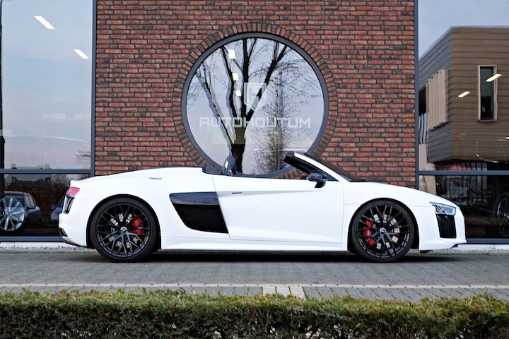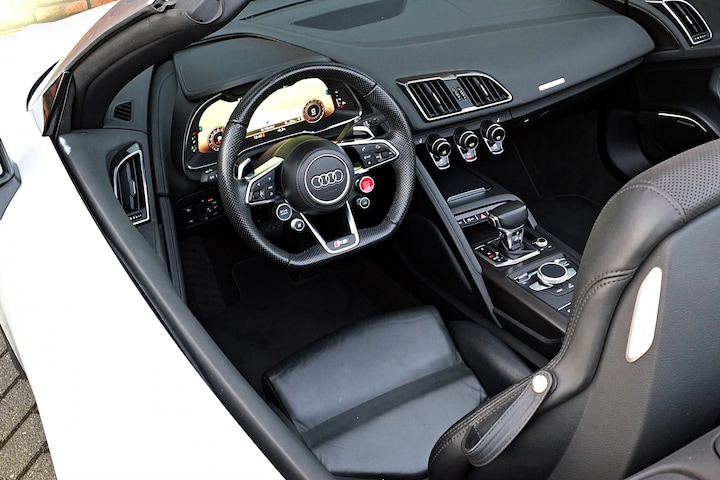 Zomer? Het dak eraf! Geniet van het zonnige rijgevoel van deze perfect onderhouden cabrio. De Audi R8 Spyder vertegenwoordigt het beste van degelijk Duits design. Dit exemplaar is van het bouwjaar 2017 en heeft 38196 kilometer op de teller staan. De aandrijving wordt verzorgd door een tiencilinder benzinemotor en een automatische transmissie. Voorzien van een lederen interieur: stijl en kwaliteit voor u en uw passagiers! Neem plaats op de comfortabele stoelen. Dankzij de elektrische bediening en het geheugen is het eenvoudig om hierin de beste zitpositie te vinden. Dankzij de elektrische bediening volstaat een druk op de knop als u open of dicht wilt rijden. Ook is de auto voorzien van: 20 inch lichtmetalen velgen, sportonderstel, windscherm, adaptief dempingsysteem, warmtewerend glas, led-achterlichten, metallic lak, elektrisch bedienbare ramen voor en elektrisch inklapbare buitenspiegels.