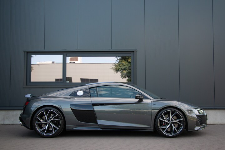 De auto is origineel in Nederland geleverd en verkeert dankzij zorgvuldig onderhoud in uitstekende staat. De lage kilometerstand onderstreept het beperkte gebruik en bevestigt de verzorgde omgang met deze bijzondere sportwagen. uitzonderlijk goed. Het exterieur straalt kracht en elegantie uit, met zijn scherpe lijnen, brede stance en kenmerkende Audi-design. Op dit moment is de auto voorzien van een opvallende groene striping wrap, die het sportieve karakter extra benadrukt. Indien gewenst kan deze wrap uiteraard verwijderd worden, zodat de originele uitstraling van de auto volledig behouden blijft. De neus van de auto is voorzien van PPF-folie (Paint Protection Film), wat extra bescherming biedt tegen steenslag en lakschade