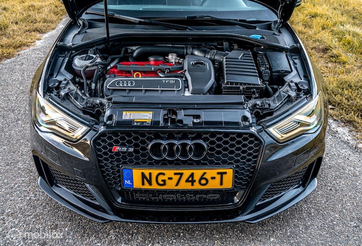 Het interieur is luxe en goed uitgerust, met hoogwaardige materialen en moderne technologieën zoals het MMI infotainmentsysteem. De RS3 heeft ook sportieve styling, met agressieve lijnen en kenmerkende RS-elementen die hem een unieke uitstraling geven.