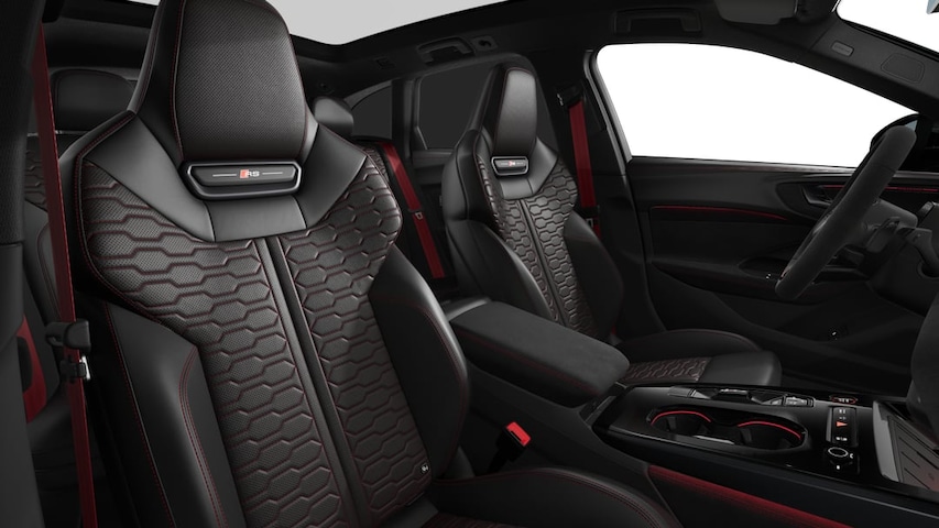 - In vanadiumkleur gespoten panelen met verlichte RS-logo’s bovenaan de rugleuningen