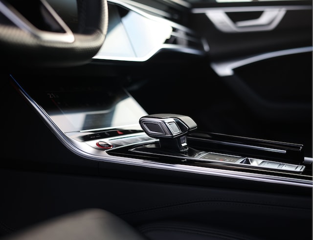 Het zwart lederen interieur is eveneens fraai, met de carbon lijsten, lederen dashboard en panoramadak. Daarnaast is de Audi ook onderscheidend in opties: Soft-Close, Matrix lampen, Bang&Olufsen, 360 camera, head-up display en de assistentiepakketten “Stad” en “Tour”