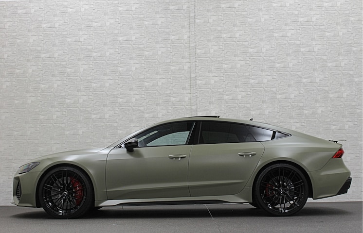 Dankzij de olijf groene carwrap en 22 inch ABT velgen (twv 9200,=) is deze auto een unieke verschijning om te zien.