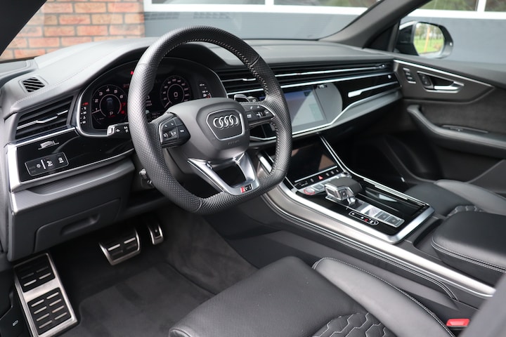 Wat een auto, deze hele stoere RSQ8 in de prachtige combinatie Daytona Grey met hoogglans zwart accenten. De ongeëvenaarde 8 cilinder klinkt van zichzelf al geweldig, maar met de Audi RS sportuitlaat is muziek overbodige luxe geworden, wat een geluid. Het Quattro 4 wielaandrijving systeem zorgt ervoor dat het vermogen op de goede plek terecht komt. Niet alleen het rijden is een feestje, het is ook nog eens een genot om naar te kijken. De 23 inch lichtmetalen velgen, honingraad details en sportieve RS-accenten maken het geheel tot een stijlvolle verschijning.
