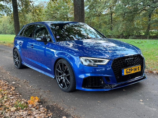 Audi S3 2.0 TFSI S3 Quattro 301pk S-Tronic. November 2014 professioneel omgebouwd naar het 2017 model. Origineel Sepang Blue LY5Q, Origineel Full LED koplampen, Full LED achterlichten, Dynamische knipperlichten, 19inch LM velgen, KW schroefset, H&R stabilisator voor en achter, Shadowline, Hoogglans zwarte exterieur accenten, Maxton diffuser, Camera, Parkeersensoren voor en achter, Keyless entry, Keyless start, Adaptieve cruise-control, Lane assist, Brake assist, Frontcamera/verkeersbordherkenning, Elektrische verstelbare stoelen, Stoelverwarming, Dimmende binnen en buitenspiegels, Regensensor, Lichtsensor, Zwarte hemelbekleding, Alarmsysteem, enz.enz..