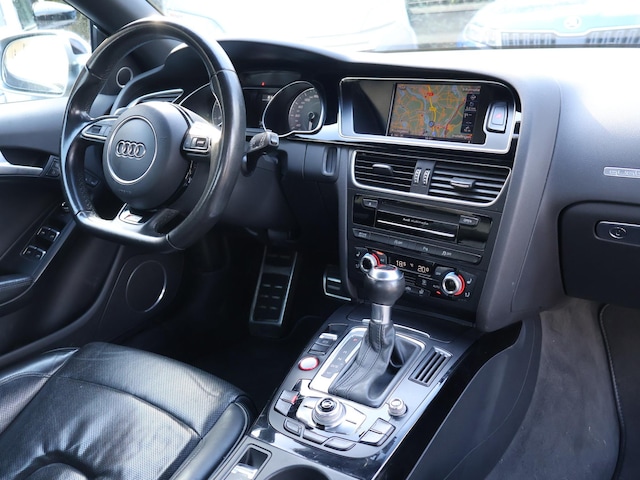 Audi S5 cabrio 3.0 TFSI 333 PK Quattro automaat met 7 versnellingen, Zwart leder interieur met stoelverwarming en verkoeling, Afneembare trekhaak met 1900 KG trekgewicht, Bang & Olufsen premium sound, Xenon met LED dagrijverlichting, Parkeersensoren voor + achter, Elektrische stoelverstelling, 20 inch lichtmetalen velgen, Bluetooth, S-line sportstuurwiel, Keyless-drive, Cruise control, Climate control.