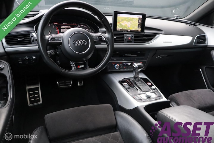 Waanzinnig fraaie, onverprutste Audi S6 4.0 TFSI. Brute V8 met de verpakking van een ruime en veilige gezinsauto! Met 420 pk, een alerte S-Tronic automaat en quattro vierwielaandrijving bepaald geen stakker, hij geeft menig sportauto het nakijken! 0-100 in 4,7 seconden, top begrensd op 250 km/u. Zeer fraai uitgevoerd in Havanna Black metallic (met een tintje donkerbruin erin), zwart interieur met zwarte hemel en 20 inch Rotor velgen. In de Pro Line Plus uitrusting verder voorzien van leder/alcantara kuipstoelen met geheugen, stoelverwarming voor en achter, adaptive cruise control, panoramadak, B&O sound system, keyless-go, LED-koplampen, head-up display, 360-graden camera en pdc, night view, dynamic drive, schakelflippers, 4-zone climate control en elektrische achterklep. De kilometerstand is volledig aantoonbaar en de staat van de auto is zeer fraai. Laatste beurt bij 133.297 km in 02-2025, levering met nieuwe apk.