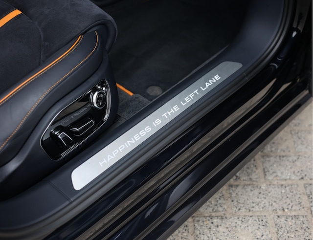 Hier is namelijk echt alles uit de kast getrokken. Zo is het gehele interieur bekleed met zwart leder en Alcantara en versierd met prachtige oranje accenten. Zo is er op het dashboard een oranje bies aangebracht, maar ook op alle zittingen. Daarnaast is het hele interieur versierd met oranje stiksels en afgewerkt met oranje gordels. Extra detail: De interieurlijsten zijn uitgevoerd in carbon met een oranje accent dat in het carbon gewoven is. Zoals we eerder benoemden: uniek!