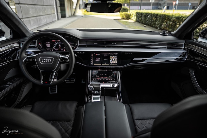 De S8 is superieur in alles. Genadeloos snel, uiterst comfortabel en stil. Het compromis tussen dynamisch en comfortabel rijden is perfect naar smaak in te stellen. Dit laatste is belangrijk in deze klasse. Alle technologie dat onderhuids schuil gaat is bedoeld om aan de hoogste eisen van de inzittenen te voldoen. Dient de rit comfortabel te zijn dan biedt de luchtvering in combinatie met de adaptieve demping soelaas. Het wegdek wordt gescand door camera’s waardoor het onderstel zich anticipeert op oneffenheden. Bij een dynamische rit wijzig je het karakter automatisch of naar eigen inzicht en wordt de demping harder, de sturing zwaarder en directer en de responsen van gas en remmen bijteriger. Bovendien is de S8 uitgerust met vierwielbesturing waardoor de balans extreem vergroot. In Dynamic modus laat de magistrale V8 ook van zich horen. Nooit te hard, maar meer dan voldoende een ieder te laten weten dat er serieuze potentie onder de motorkap schuil gaat. Een diepe donkere roffel dat ontzag opwekt.