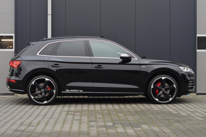 Prachtige Audi SQ5 3.0 TFSI Quattro. Uitgevoerd in de kleur Mytthos Zwart en 22 inch lichtmetalen velgen waardoor deze auto zeer sportief uitstraalt. Dat zien we vervolgens terug in het interieur dat is voorzien van Nappa leder met ruiten stiksels, elektrisch bediend en verwarmd. Om het comfort te optimaliseren is de auto voorzien van cruise controle, rondom zichtcamera, lane assist, led koplampen, elektrische achterklep, dodehoek detectie en vele extra. Tevens is de Audi voorzien van een elektrisch uitklapbare trekhaak en heeft hij een trekgewicht van 2400kg.