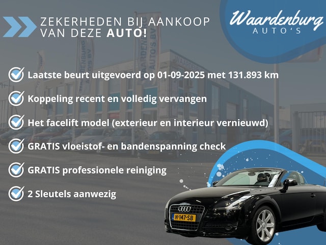 Leuker rijden kan toch haast niet? Al sinds 1998 een begrip in de cabrio wereld, de Audi TT! Deze Audi TT verkeert optisch in nette staat, zowel het interieur- als het exterieur en de cabrio kap zijn door zijn vorige eigenaar netjes verzorgd. De 2.0 TFSI motor (genoeg voor 200 PK) laat niks te wensen over, genoeg power en toch door zijn 6e versnelling zuinig op de momenten dat het nodig is.