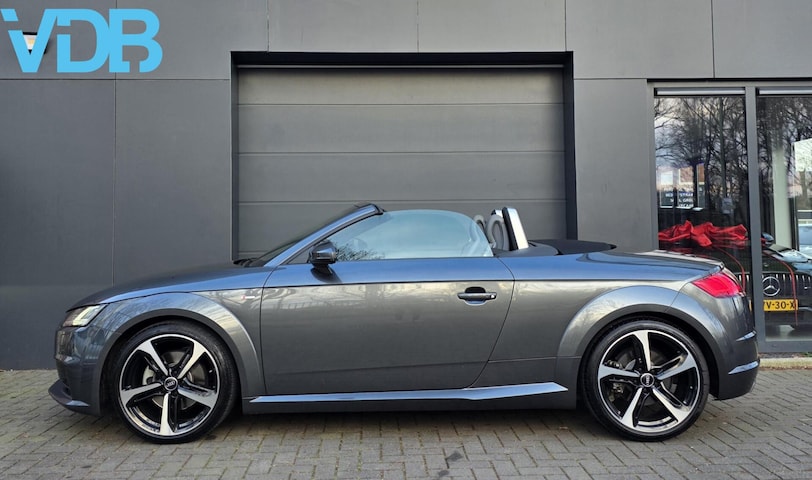 In zeer nette staat verkerende Audi TT Roadster 2.0 TFSI 230 PK S-Line in de fantastische kleur Daytona Grau Pareleffect Metallic, voorzien van zeer veel opties, S-Line Exterieur Pakket, S-Line Interieur, S-Line stuur afgevlakt multifunctioneel met flippers, VOL-LEDER S-Line KUIPSTOELEN MET RUIT EN LOGO in de stoelen met logo, S-Tronic Automaat, Navigatie MMI, Audi Virtual Cockpit, Cruise Control, Audi Active Lane Assist, Audi Drive Select, LED Koplampen met dynamische knipperlichten, Keyless start, Led achterlichten met dynamische knipperlichten, Parkeer sensoren voor en achter, Elektrisch verstelbare en verwarmbare buitenspiegels, Climate Control, Stoelverwarming, 19 Inch Audi RS velgen!!!