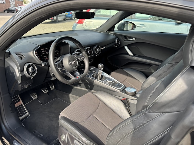 Uw nieuwe auto staat klaar voor vertrek. Stap gerust in, deze dealeronderhouden Audi TT heeft 87768 kilometer gelopen en is van het bouwjaar 2015. Houdt u van een sportieve, dynamische uitstraling? Dan komt de S-Line styling als geroepen. Een krachtige motor geeft deze auto zijn sportieve prestaties. Goeie looks? Jazeker! Maar de sportstoelen zorgen ook voor een goed gesteunde en comfortabele zit. Xenonverlichting zorgt in het donker voor beter zicht. In deze auto profiteert u onder andere ook van: 18 inch lichtmetalen velgen, sportonderstel, halflederen bekleding, warmtewerend glas en verstelbare lendensteunen.