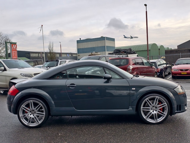 Deze Audi TT 3.2 V6 quattro is een waar icoon dat rijplezier en elegantie combineert. Met zijn krachtige 3.2-liter V6 motor en indrukwekkende 184 kW (250 pk) vermogen accelereert deze coupé in slechts 6,2 seconden van 0 naar 100 km/u. Dankzij de vierwielaandrijving (quattro) behoud jij grip en controle, ongeacht de omstandigheden. Uitgevoerd in het tijdloze grijs en voorzien van het luxe S Line exterieur en lichtmetalen velgen 18", is het een blikvanger op elke weg.