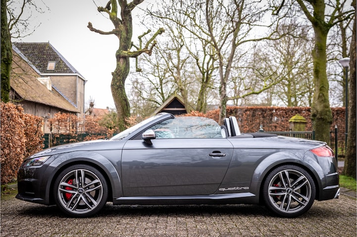 Fraaie Audi TTS Roadster Quattro in keurige conditie en rijke uitrusting aan opties. Nieuwwaarde van deze auto is 92.000 euro. Lakkleur van deze TTS is Daytonagrijs Pareleffect, het interieur is voorzien van S sportstoelen bekleed met leder en afgestikt in diamond stitching. De hemelbekleding is uitgevoerd in donker antraciet. Het interieur is voorzien van een uitgebreid lederpakket waarbij ook de middenconsole met leder is afgewerkt.