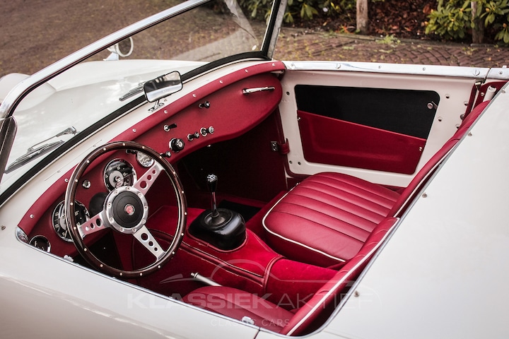Het interieur is adembenemend mooi. Het prachtige rood vormt een stijlvolle combinatie met de buitenkleur. Tijdens de restauratie is het interieur volledig vernieuwd en de rood lederen stoelen zijn in perfecte conditie en zitten stevig en comfortabel. De deurpanelen, het dashboard en ook de vloerbekleding is volledig nieuw. De diverse chroom en sierdelen zijn uiteraard ook in nieuwstaat en in glanzende conditie. De prachtige Smiths tellers zijn nieuw en werken uiteraard naar behoren. Het houten stuurwiel is niet alleen volledig nieuw, maar vormt ook een prachtige combinatie bij het interieur.