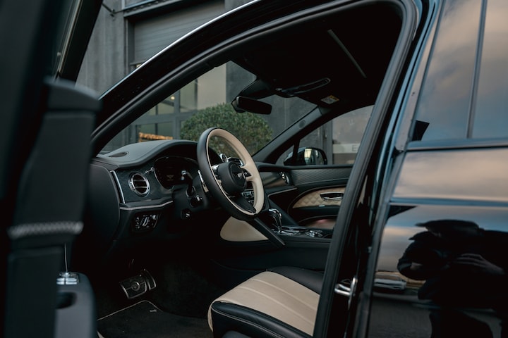 Het diepe zwarte exterieur geeft de Bentayga een imponerende présence. Strak, krachtig en onverstoorbaar. Een SUV die respect afdwingt zodra hij in het zicht komt – zonder te schreeuwen. De Bentley-lijnvoering, de verfijnde details en de monumentale grille maken één ding duidelijk: dit is geen auto die je rijdt, maar een auto die je beleeft.
