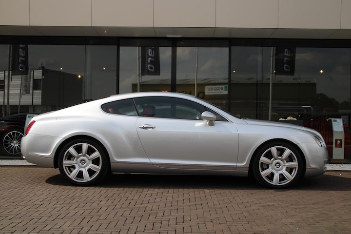 Het model dat we u hier aanbieden komt uit 2005 en heeft pas 51.000 kilometer op de teller. Door de zilveren kleur komen de lijnen van deze sport coupé erg goed uit. Voor het herkenbare gezicht van de Continental GT, achteraan brede heupen en mooie ontwerpdetails zoals de elektrisch bediende spoiler, maar ook de ovale uitlaatpijpen die direct duidelijk maken dat deze Continental beschikt over de W12 motor. Aan de zijkant ziet u gelijk de klassieke coupé lijn. De zevenspaak-Bentley-velgen zijn dik maar overheersen niet.