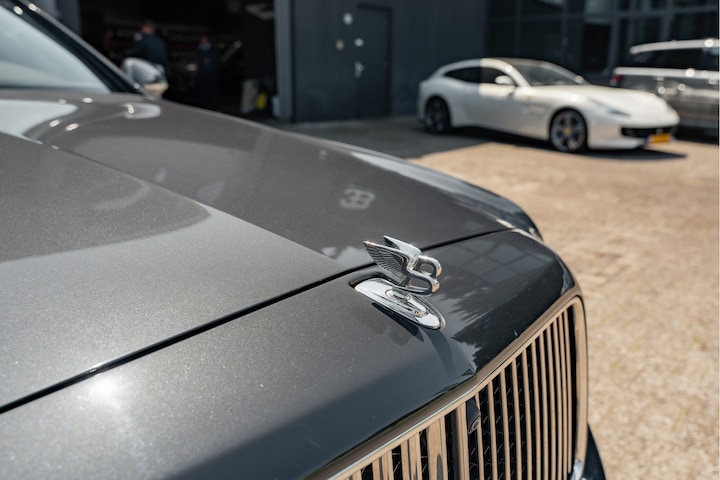 Omdat rijden een plezier mag zijn, staat deze Bentley Mulsanne enthousiast te glimmen in de showroom. Technisch in topconditie, strak in de lak… echt een droomauto! De krachtige motor geeft deze Bentley uitstekende prestaties. Laat de zon maar schijnen door het elektrisch bediende glazen panorama dak en hou een handje over dankzij de elektrisch bedienbare achterklep. Niks vergeten? O ja toch: het lederen interieur moeten we zeker even noemen. De verwarmbare voorstoelen inclusief massagefunctie benadrukken nog maar eens dat we hier te maken hebben met een regelrechte verwenauto. Dankzij de elektrische stoelbediening is het gemakkelijk om de optimale zitpositie te vinden. Laat de koude dagen maar komen. Bij u zitten ze zelfs achterin goed, dankzij de verwarmde achterbank. Bij de zeer complete uitrusting van deze auto behoren ook 21 inch lichtmetalen velgen, elektrische zonnerollo voor de achterruit, adaptief dempingsysteem, geluidsisolerende ramen, LED-achterlichten, verstelbare lendensteunen, metallic lak, elektrisch bediende ramen, elektrisch bediende, verwarmde en inklapbare buitenspiegels, LED-dagrijverlichting en elektrisch verstelbare achterbank.