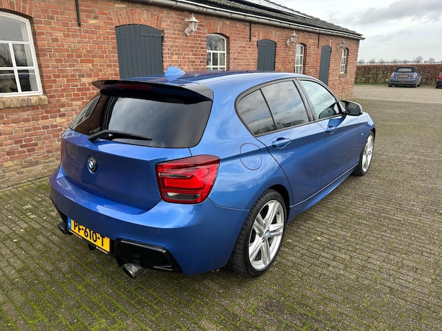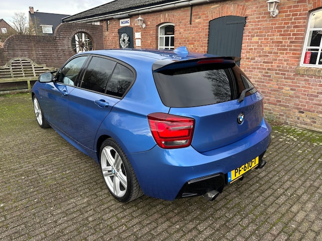 BMW 116i 5-Drs. High Executive met M-pakket, Estoril blauw metallic met zwart Alcantara/stof bekleding, sportstoelen en stoelverwarming, grootbeeld navigatie, I-drive met harde schijf, airco met climacontrol, cruise control, lederen multifunctioneel sportstuur ( recent opnieuw bekleed ), radio/CD/Mp3 speler met stuurbediening, zwarte hemelbekleding, blue-tooth af fabriek, middenarmsteun, blauwe led voetverlichting, regen en lichtsensor, privacy glass achter en achterzijruiten originele 18 Inch M-style lichtmetalen vegen, Bi-Xenon verlichting met koplampreiniging, mistlampen in de voorbumper, zwarte grille, voorspoiler, spoiler op de achterklep, diffuser onder de achterbumper, M-style buitenspiegels, Guerrilla uitlaat met by-pass klep, dealeronderhouden ( de Turbo en de klepseals zijn recent vervangen, alle facturen hiervan zijn aanwezig ) bijzonder mooie en technisch perfecte 116i !! ( wij berekenen geen afleverkosten en U kunt uiteraard Uw huidige auto inruilen )