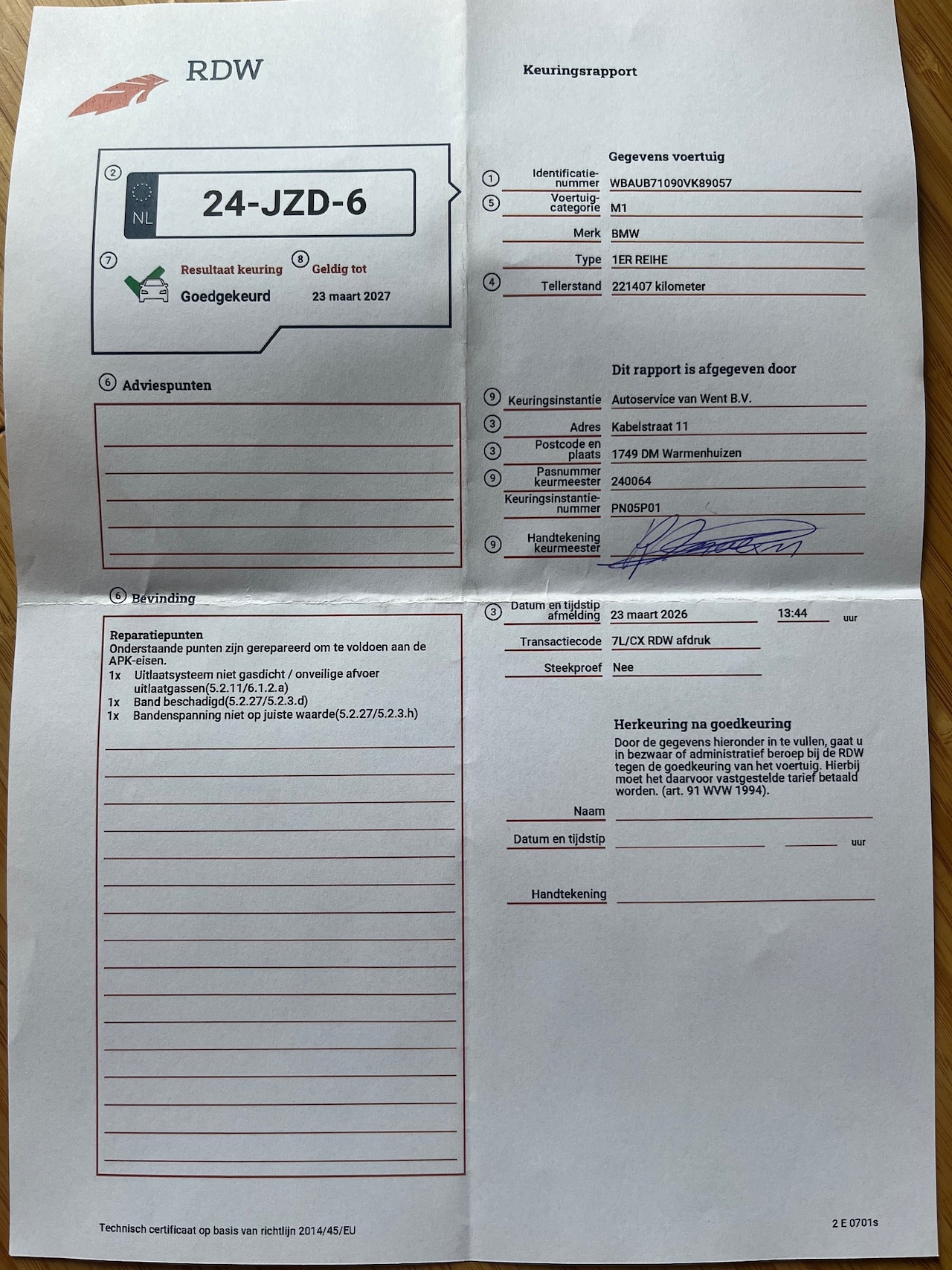 | APK | Ja, tot 23 maart 2027 |
