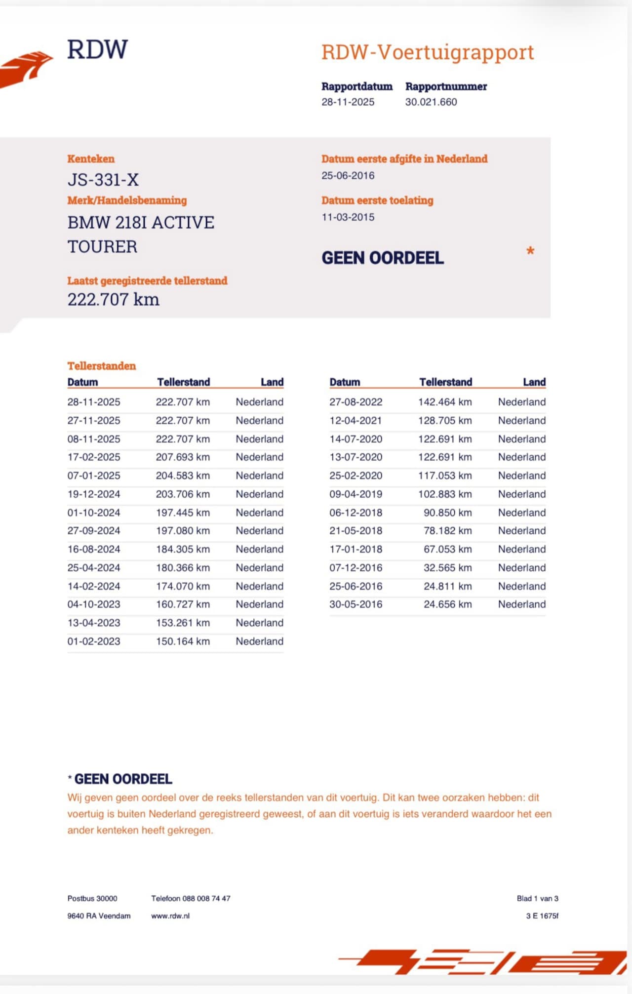 | Kilometerstand | 222.707 km |
