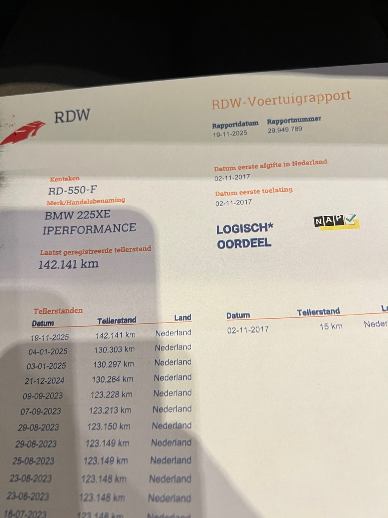 | Kilometerstand | 142.142 km |