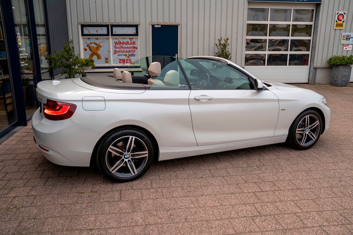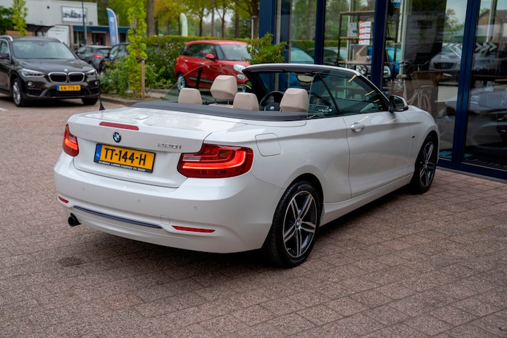 "De zon tegemoet in ultieme stijl! Deze in topstaat verkerende BMW 220i Cabrio uit 2016, is een genot om in te rijden. Deze heerlijke 2.0 liter viercilinder turbomotor levert 184 pk, perfect voor sportieve ritten en ontspannen tochten. Met de stoelverwarming aan en het geluid van de Harman Kardon boxen en het lederen interieur is uw rijcomfort werkelijk fantastisch.