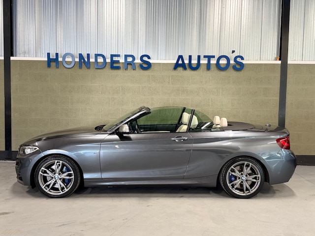 Zeer nette en rijk uitgeruste BMW 2-serie Cabrio M235i High Executive uit 2015, afkomstig van de eerste eigenaar en voorzien van een NAP gecontroleerde kilometerstand. Deze sportieve cabrio is uitgevoerd in een stijlvolle grijze kleur en combineert krachtige prestaties met luxe en comfort.