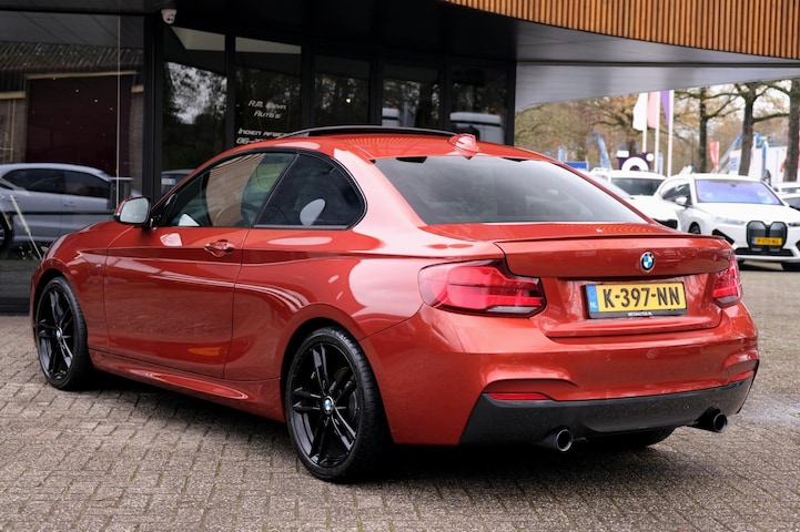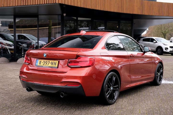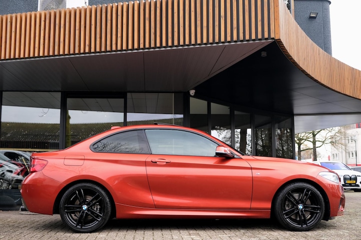 Prachtige, perfect onderhouden en rijk uitgeruste BMW 2-serie Coupé 230i High Executive uit 2018. Deze 252PK sterke coupe is o.a. voorzien van: M-sportpakket, HiFi System Harman Kardon, M-achterspoiler, elektrisch glazen schuif-/kanteldak, keyless start, sportstoelen, stoelverwarming, Adaptieve LED koplampen en M-sportonderstel. Uitgevoerd in Sunset Orange met zwart lederen sportinterieur.