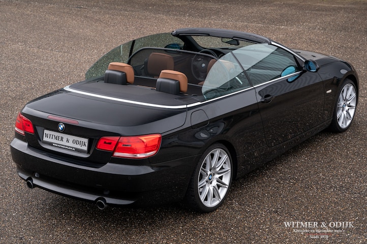 De BMW 3 serie, fabriekscode E93, geintroduceerd in 2006 had als eerste BMW cabriolet een praktisch en esthetisch fraai metalen cabriodak. Het volledig automatisch wegklapbare dak gaf de auto gesloten een coupe aanzicht. Het nadeel van een altijd kwetsbaar dak van stof verviel hiermee. Middels het optionele Comfort Access Systeem is het dak op afstand met de sleutel te openen en sluiten, leuk vanaf het terras. Op de M3 na is de 335i de indrukwekkendste van de serie. Misschien zelfs wel de beste koop, dankzij de 6 cilinder turbomotor heeft de 335i net zoveel koppel (400Nm) als een veel kostbaardere M3. Onderschat de prestaties, en het comfort dankzij de enorm soepele motor, dus zeker niet. Een 335i is in combinatie met de automatische versnellingsbak, die ook vanaf het stuur handmatig bediend kan worden, een heerlijk comfortabele en desgewenst zeer snelle cabriolet. In dit exemplaar wordt dat nog extra onderstreept dankzij de meervoudig elektrisch verstelbare sportstoelen met geheugen. Deze 335i steekt beslist boven het gemiddelde aanbod uit, zo heeft de carrosserie echt geen enkel zichtbaar gebruiksspoor. Het interieur in fraai Sattel Braun leer lijkt ook wel zo uit de BMW showroom, zaken als velgen, de motorruimte en kofferbak idem dito. Deze 335i ruilde wij in van een serieuze BMW liefhebber die er zonder voorbehoud voor zorgde. Hoog glanzende originele lak, dus schadevrij. Alle originele boekjes en servicehistorie present en de complete sleutelset. Kortom geen mits of maar, een 335i zoals u van ons als specialist in klassieke auto's mag verwachten. Ook zakelijk zeer interessant te rijden dankzij de speciale bijtellingsregeling, informeer bij ons. Wordt afgeleverd inclusief nieuwe APK, garantie en onderhoudsbeurt.