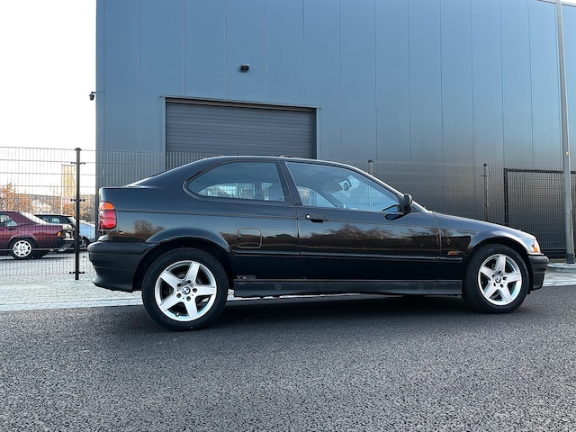 Een karaktervolle BMW 3-serie Compact met automatische transmissie, uitgevoerd in Cosmos Schwarz Metallic. Een originele Duitse uitvoering met een sterke 1.6 benzinemotor en de kenmerkende achterwielaandrijving die BMW rijden bijzonder maakt.